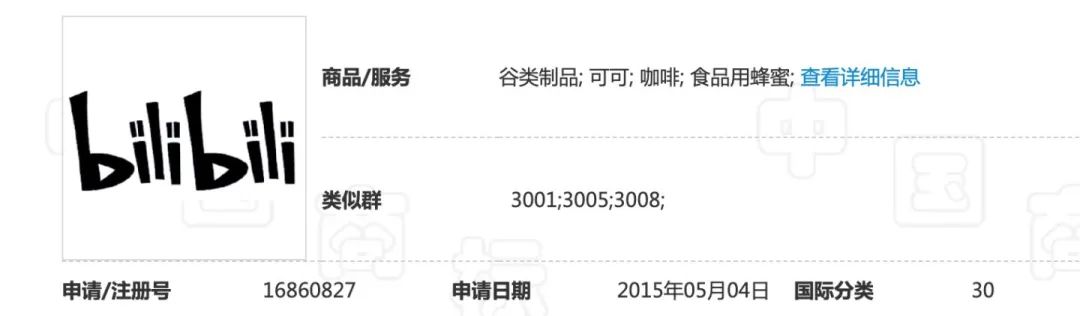 2015年,B站在类目30注册了商标(少数几个子类目);2017年,健德公司在类目30注册了商标(其他子类目);