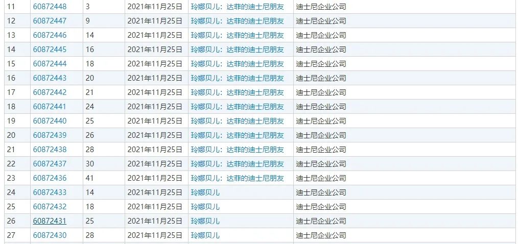 据网上信息显示,目前迪士尼企业公司还申请了多个“玲娜贝儿”商标,国际分类涉及第3类-日化用品、第21类-厨房洁具、第26类-钮扣拉链等,商标进度均显示为“初审公告”或“注册申请”。