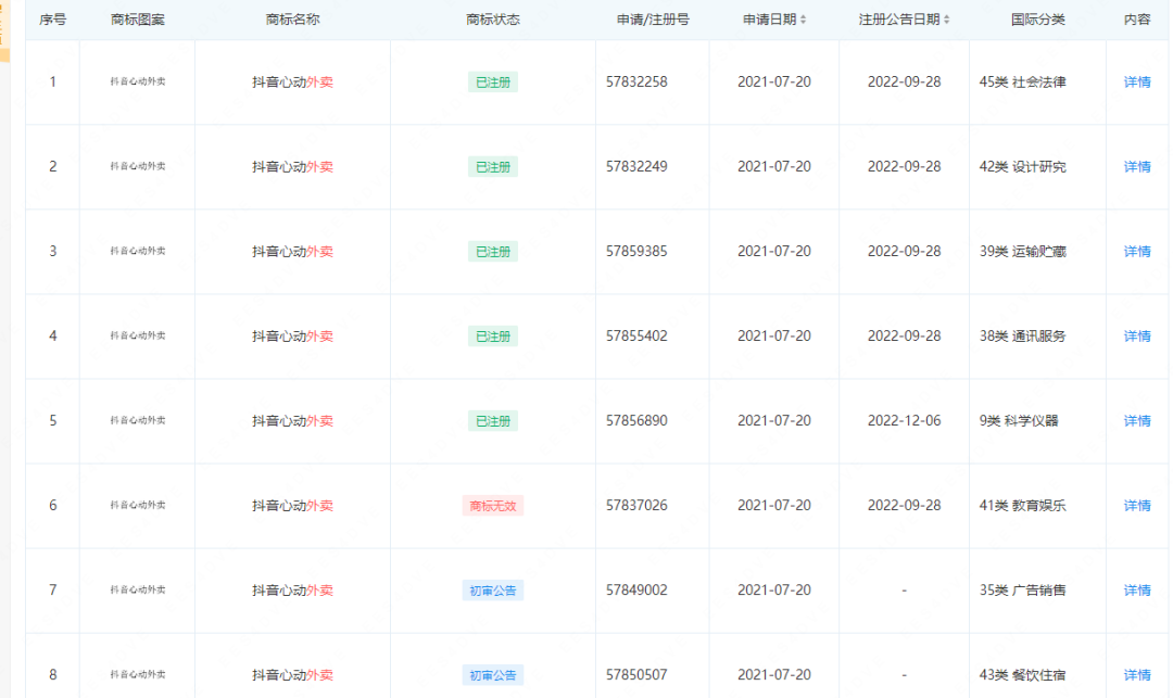 如果抖音真的决定了要做外卖行业.商标全类注册在所难免。但是现在有部分小项被别人注册,这对于抖音来说肯定是很大的损失。不知道后续抖音会不会对商标提出来无效或者以后会不会对商标提出来撤三,让我们拭目以待!