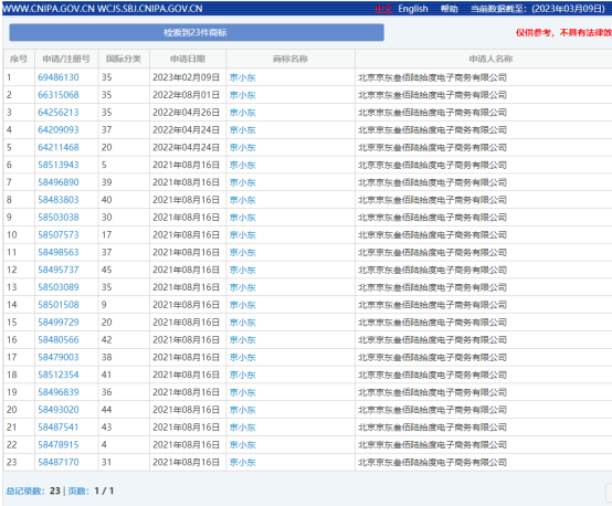 另外还有个37类由于该装饰公司选择不予注册复审,且现在还未出结果所以暂时还属于一个未知数,不过相信大家心里多少是有些自己的判断的;其实这次京东的反应相对来说还是比较迅速的,虽然还有别的单位也申请了“京小东”商标不过大概率应该也是过不了的吧,作为一个企业要长期发展,品牌保护是少不了的,给自己的品牌打造一条护城河还是很有必要的。